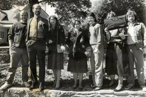 In the 1987 photo, seven members of the News-Topic’s newsroom staff stand atop a stone wall in downtown Blowing Rock in front of what used to be Tijuana Fats, where we sometimes went on Fridays after work. I’m on the far right, the most junior reporter on the staff, just a few months out of college. Second from the far left is the editor, Lee Barnes. I have long hair, combed to the side but hanging down over my forehead. It’s a black-and-white photo – our press couldn’t print color, so the staff photographer shot only black-and-white film – but if it were in color my beard would be rust-colored. I’m skinny.